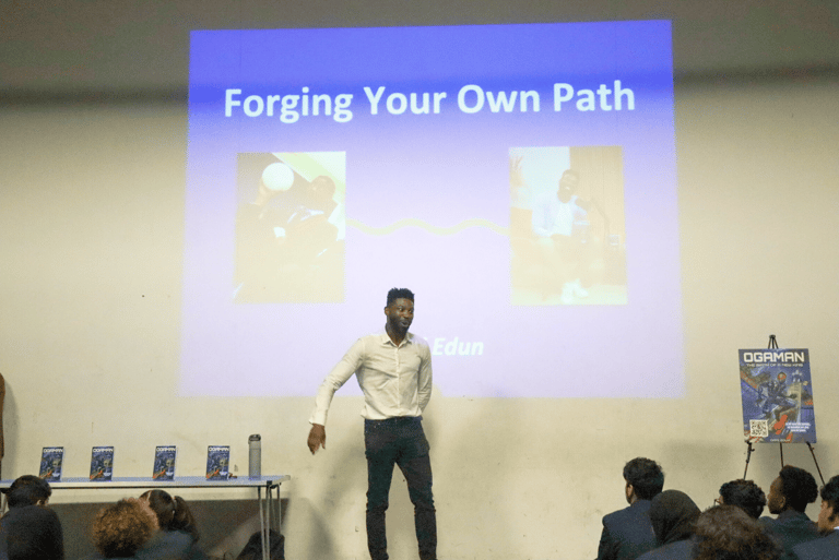 "Ogaman: The Birth of a New King" is my debut superhero dystopian novel blending YorΓΉbΓ‘ mythology with a gritty, dystopian London. Through the eyes of a teenage boy coming into power, the story explores what it means to grow up, take responsibility and reclaim a forgotten legacy.